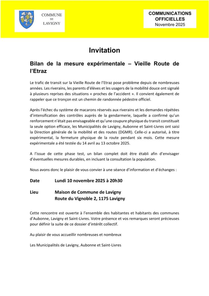 Vieille Route de l’Etraz – Invitation à une séance d’informations